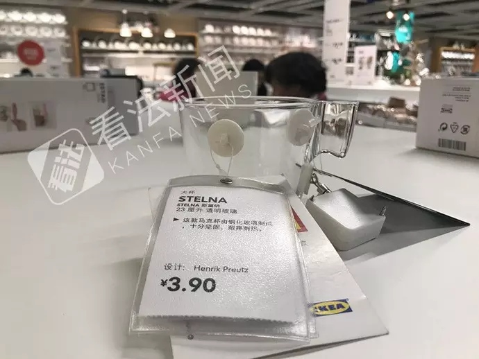 目前该涉案水杯正在宜家官网上仍正在发卖,3月15日半夜,记者来到西红门店时看到,货架上也仍有该商品出售。